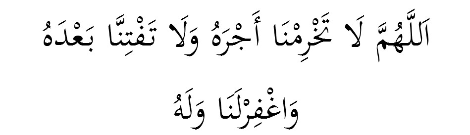 Allahumma Laa tahrimnaa ajrohu walaa taftinnaa ba’dahu waghfirlanaa walahu