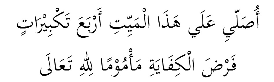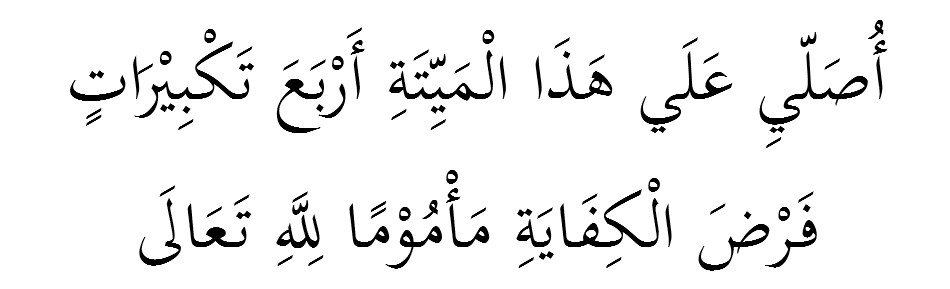 Usolli ‘ala hazal mayyiti arba’a takbiratin fardol kifayati makmuman lillahi Taala